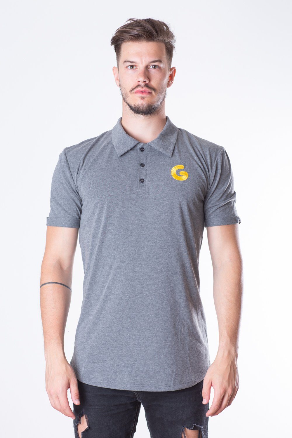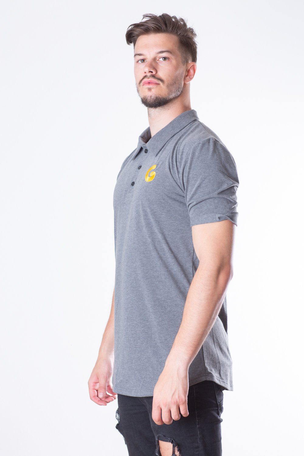 French Terry Man Polo // šedý proužek
